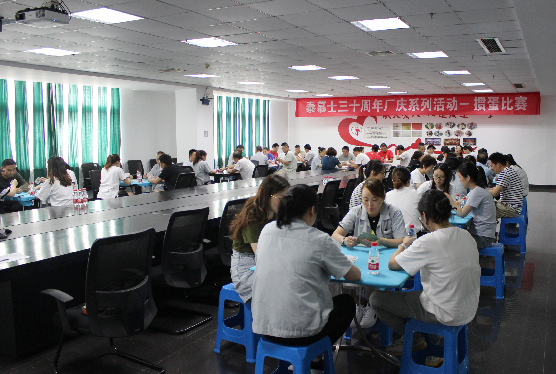7月30日,泰慕士公司在四樓活動中心舉辦三十周年廠慶系列活動——“趣味運動會”,來自各車間部門的10支代表隊參加了此次活動,激烈、緊張、和諧、友好的比賽進一步豐富了員工業余文化生活,充分展現了泰慕士人團結互助、奮勇爭先、頑強拼搏、永不放棄的精神面貌。
